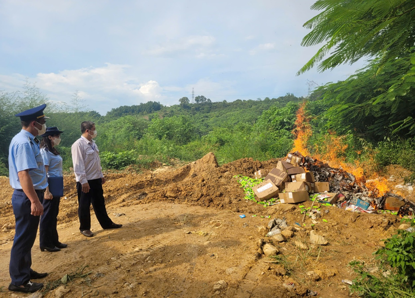 Ngày 18/8/2025 Đội QLTT Số 5 chủ trì phối hợp với Trạm thú y và bảo vệ thực vật khu vực Lào Cai và Cam Đường tiến hành giám sát buộc tiêu hủy hàng hóa là thực phẩm bao gói sẵn không rõ nguồn gốc xuất xứ gồm: 12.500 cái Socola Dubai vị trà xanh, 350 kg kẹo Socola nhân điều, 1.500 gói tăm cay, 400 hộp trà sữa; 200 kg lạp xưởng, 210 kg Nầm Lợn không đảm bảo an toàn thực phẩm, không đủ tiêu chuẩn lưu thông trên thị trường. Toàn bộ số hàng hoá trên đều được tiêu huỷ theo đúng quy định, đảm bảo an toàn và bảo vệ môi trường. Đây là biện pháp nhằm ngăn chặn thực phẩm không đảm bảo, kém chất lượng tới người tiêu dùng, đồng thời nâng cao ý thức chấp hành pháp luật của các tổ chức, cá nhân trong hoạt động kinh doanh thực phẩm.