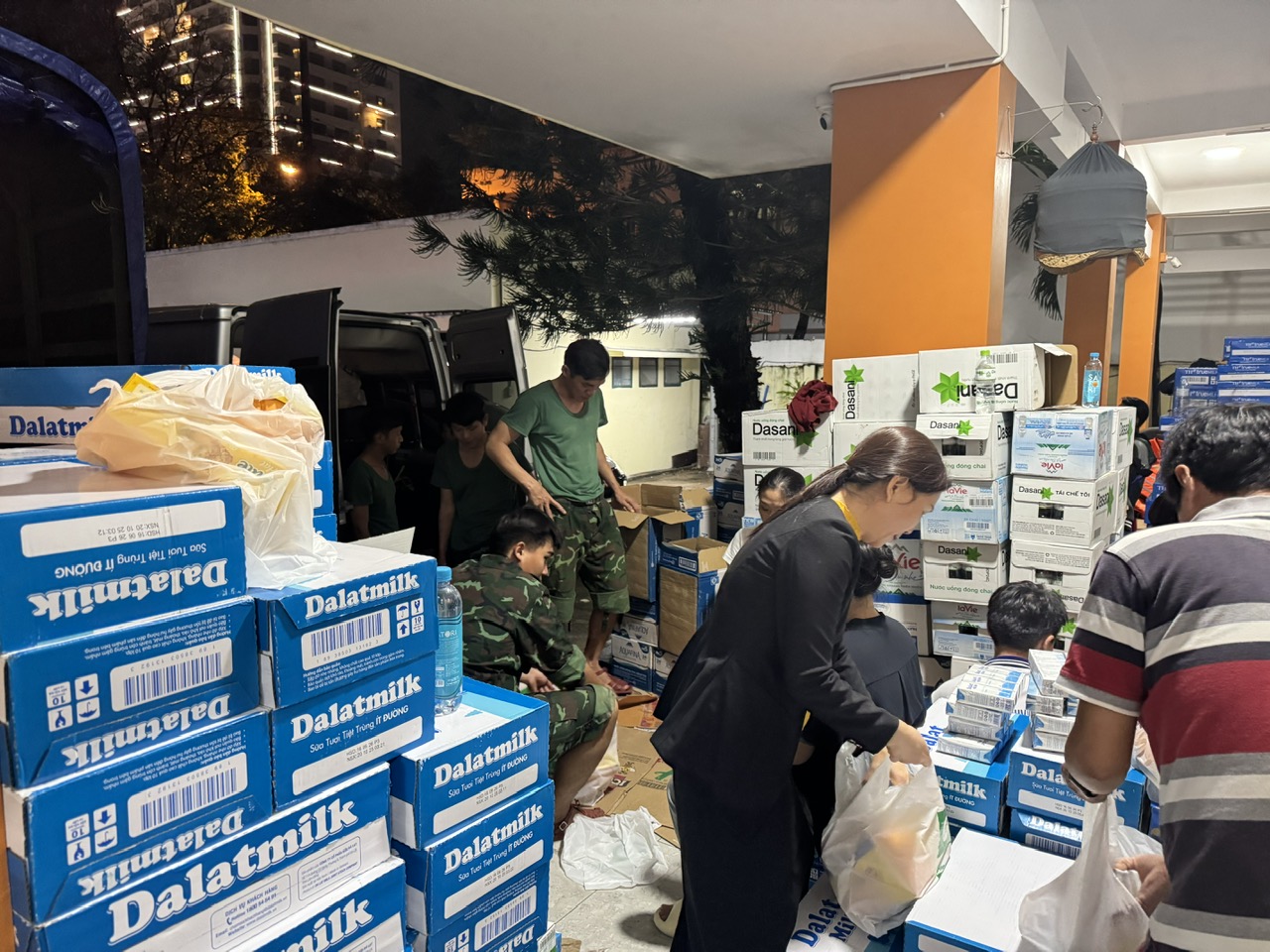 Để kịp thời hỗ trợ người dân bị thiệt hại trong đợt mưa lũ, Chi cục Quản lý thị trường tỉnh Khánh Hòa đã chủ động làm việc với các tổ chức, cá nhân và doanh nghiệp trên địa bàn tổ chức sắp xếp, điều tiết, vận chuyển hàng hóa, phối hợp tham gia cứu trợ tại các xã, phường bị ảnh hưởng; với số lượng lớn các mặt hàng thiết yếu như: bánh, mì tôm, sữa, nước…được trao đến tay người dân bị ảnh hưởng.