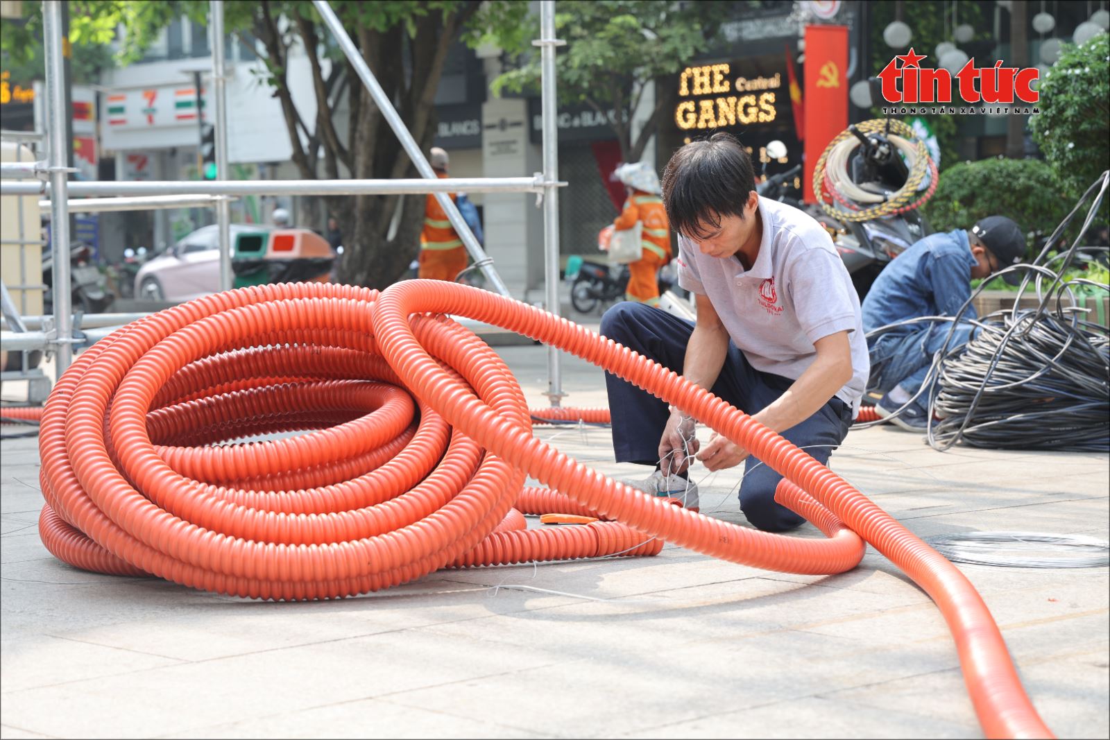 Ngay từ sáng sớm, hàng chục nhân viên kỹ thuật đã có mặt để vận chuyển thiết bị và lắp ráp các khung sắt định hình. Tại khu vực trung tâm phố đi bộ Nguyễn Huệ, các khối màn hình LED chất lượng cao đang được ghép nối cẩn thận nhằm đảm bảo hình ảnh sắc nét và sống động nhất cho "bữa tiệc" bóng đá ngoài trời.